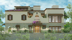The site nestled in a gated community of Sunny Brooks, the client wanted a dialogue between the solids and the voids. The sloping roofs, the beautifully ornamented railings in the balconies and an intricately designed patio, stands as a relevant example of a mixture of Mediterranean and Tuscan style of Architecture. The use of native material palette added a pinch of local flavour, just the way our client dreamed it to be.